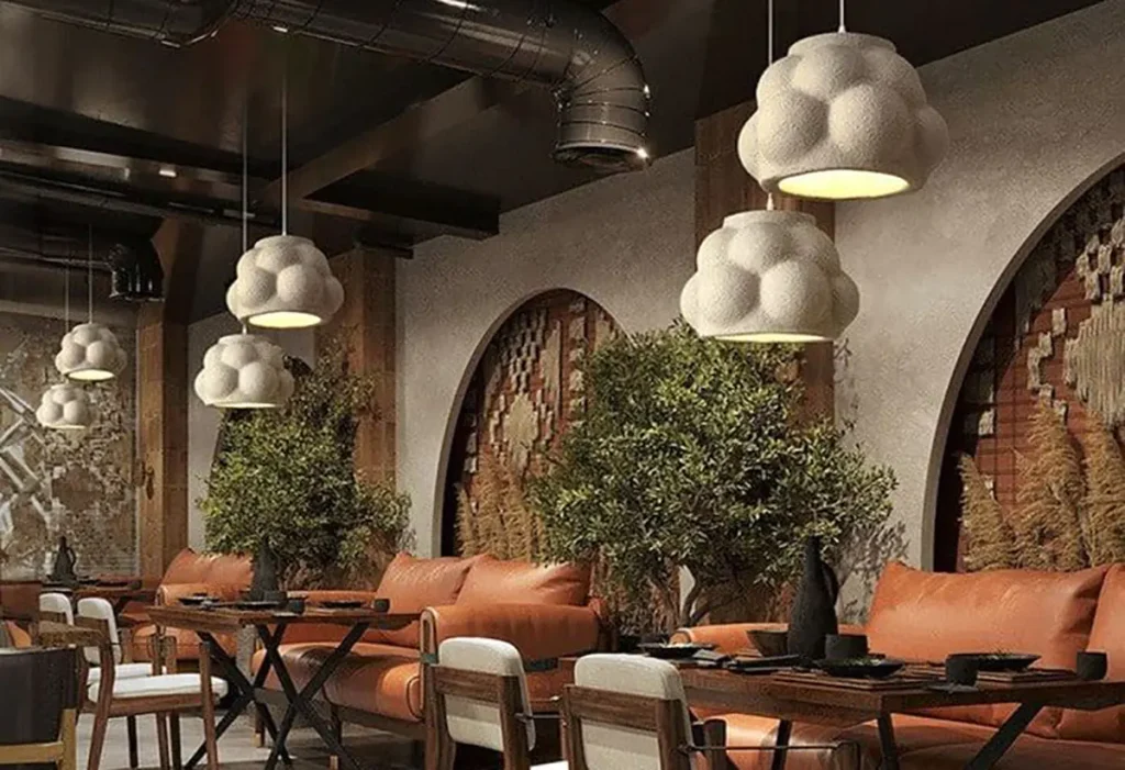 در بسیاری از کافهها، نورهای آویز کوچک بالای میزها نصب میشود تا تمرکز بصری روی میز رستورانی تقویت شود.