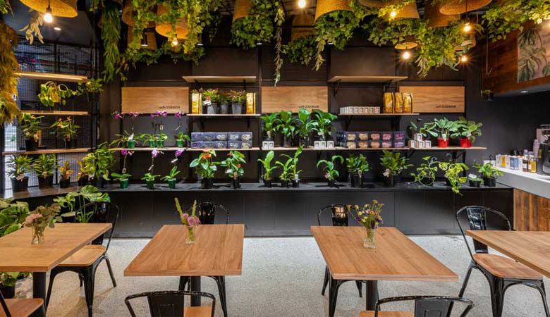 بیشتر کافههای مدرن از تلفیق چوب، فلز و بتن استفاده میکنند.